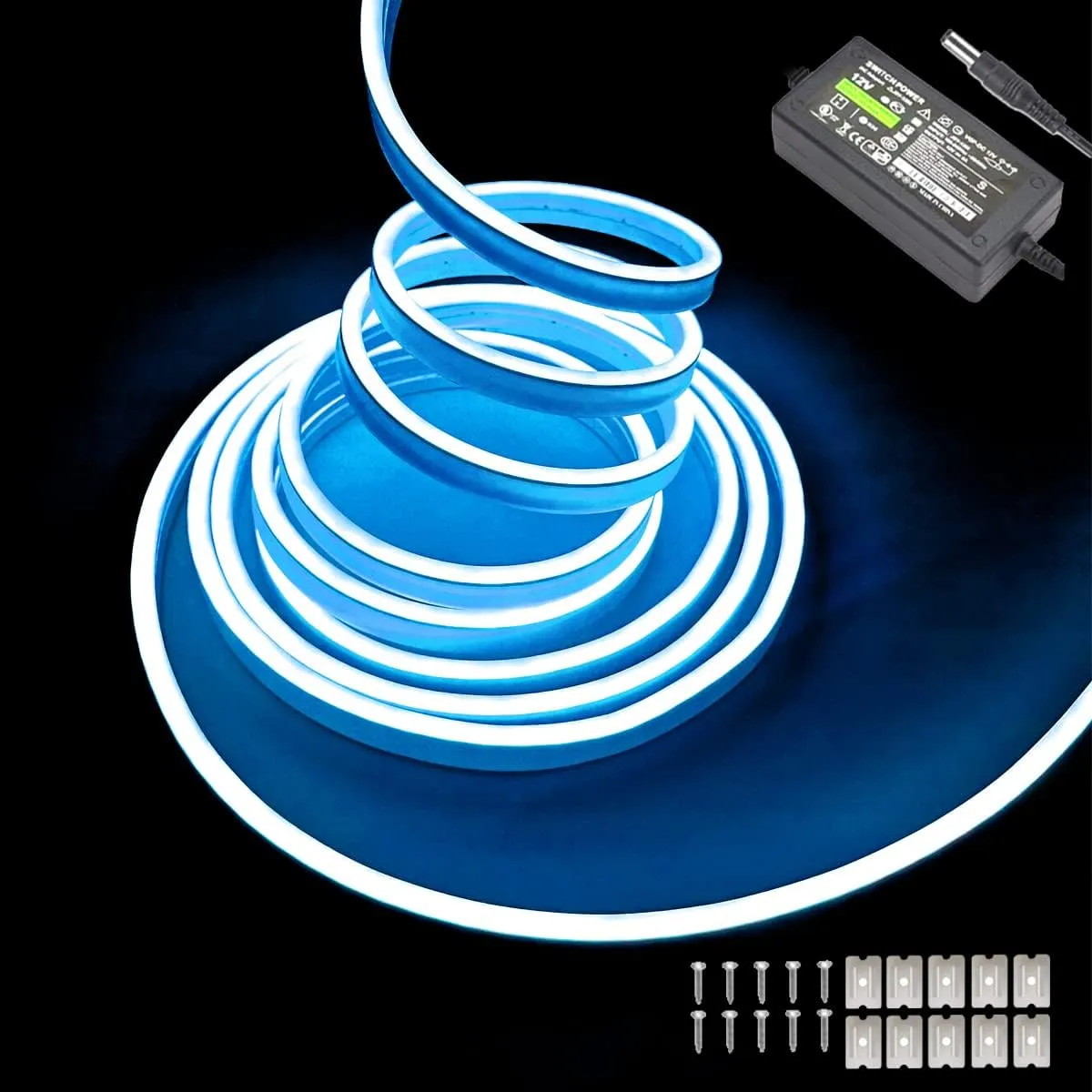 Ice Blue Neon LED Strip Lights, 16.4ft 12V Waterproof Flexible Light for Indoor/Outdoor Decoration