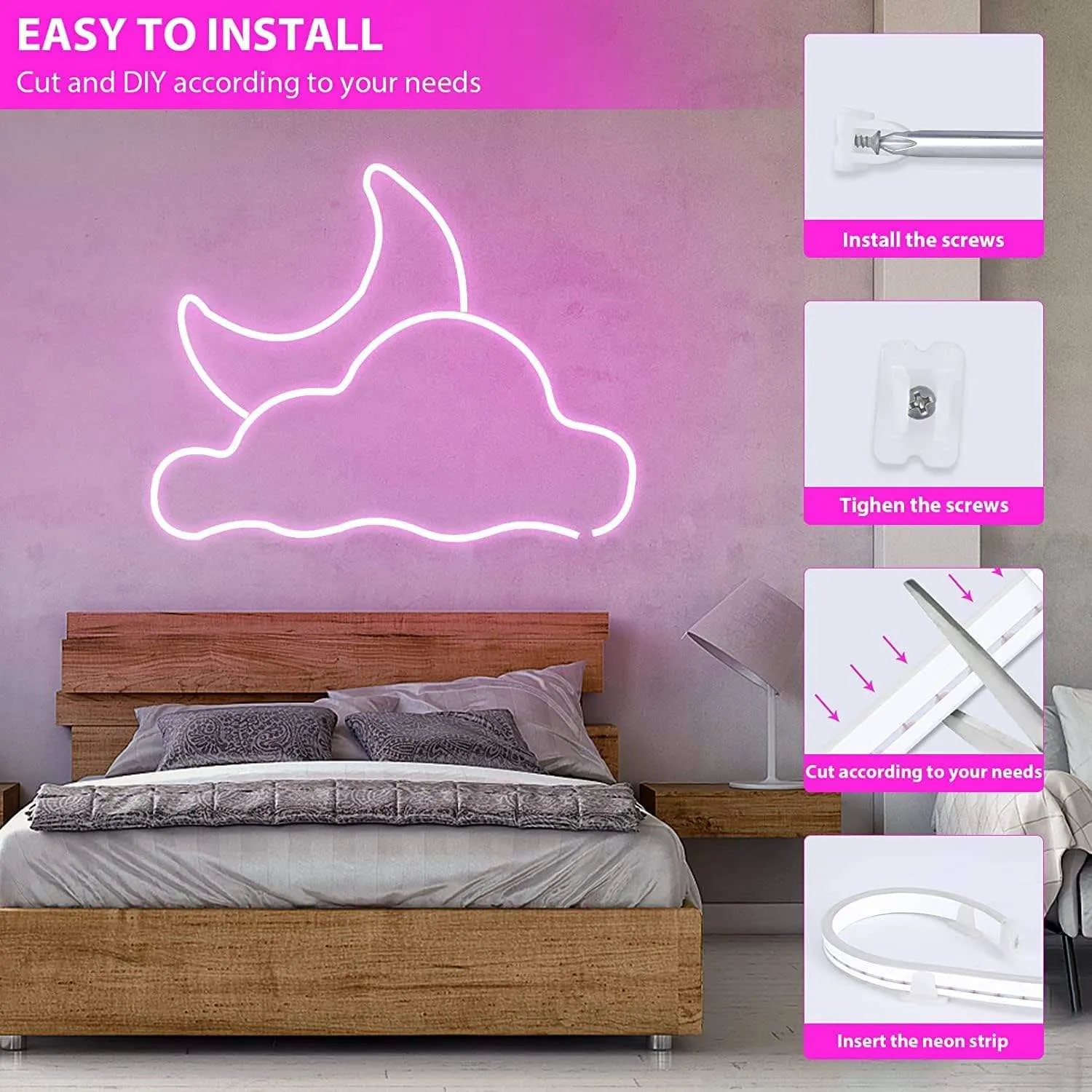 LED Neon Flex Pink Neon Light Strip 12V Waterproof Silicone LED Neon Rope Light for Kitchen Bedroom Indoor Outdoor Decoration