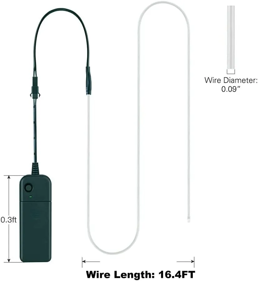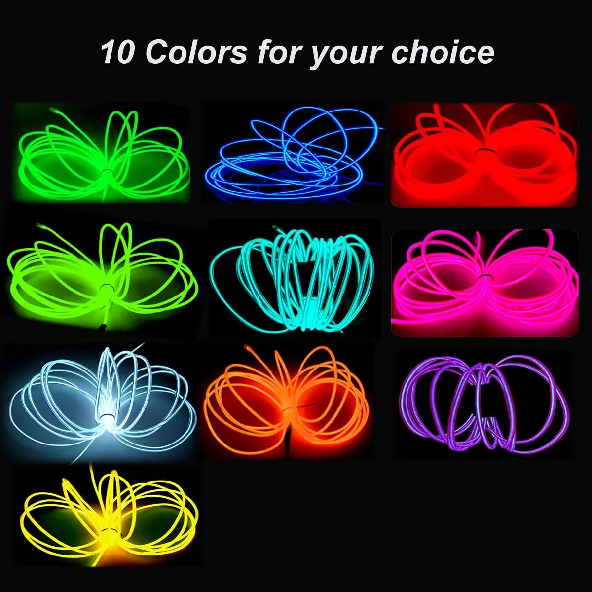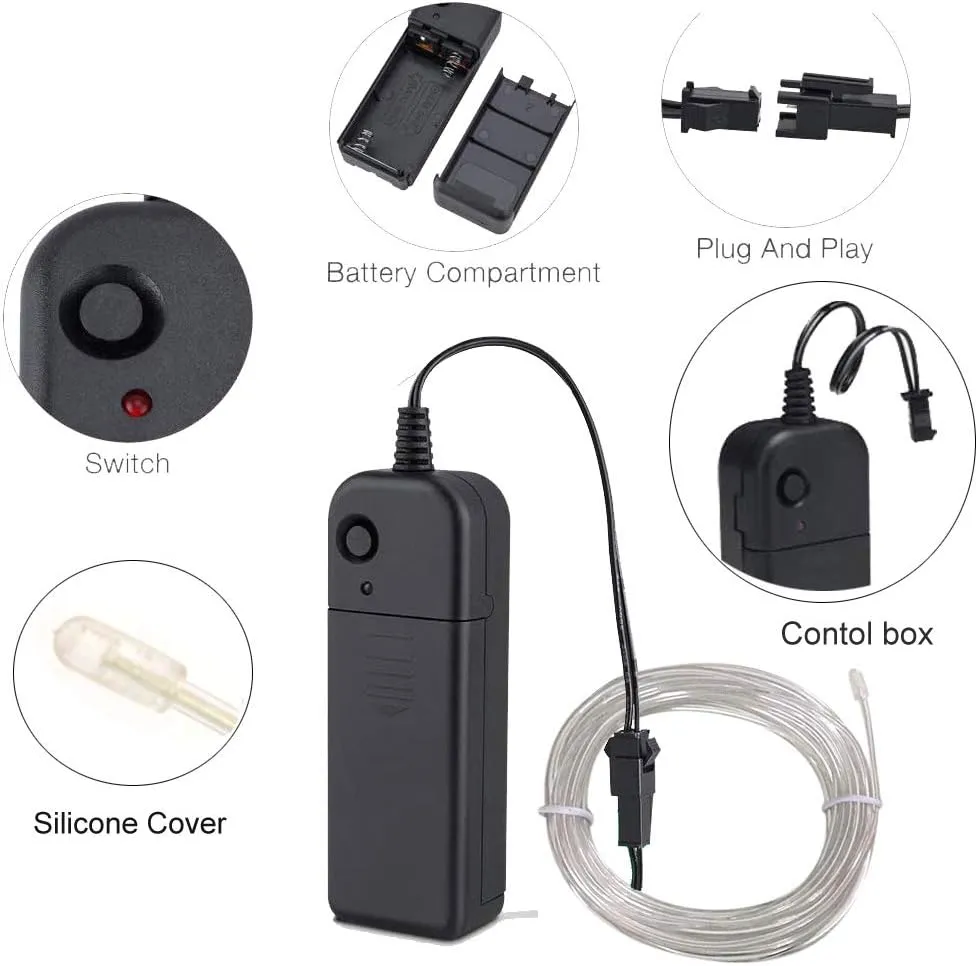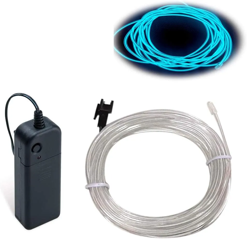 Wire Ice Blue, 16.4ft/5m Portable Battery Pack Neon Light Strip 360° Cuttable Glowing Rope Lights for Parties, Halloween, DIY Decoration