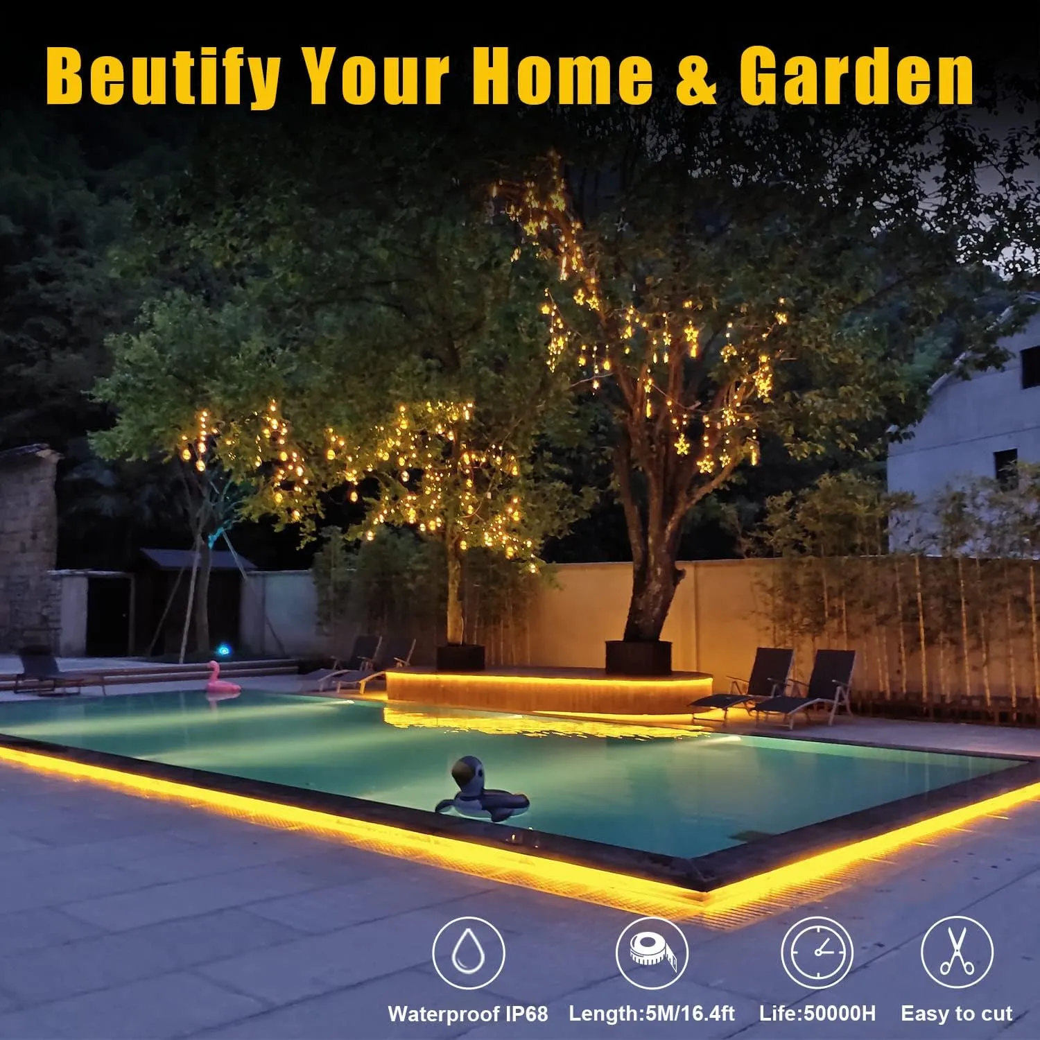 Led Strip Lights, 16.4Ft RGB Neon Led Lights for Bedroom, 12v App Control Music Sync Color Changing Rope Light, Waterproof Flex Neon Sign for Indoor Decor