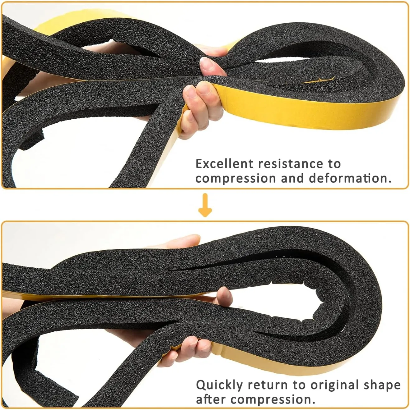 Weatherproof & Durable: The high density foam weather stripping 1 inch thick is made from high-density EVA foam. This tape is resistant to water, UV rays, and temperature changes, ensuring long-lasting performance.