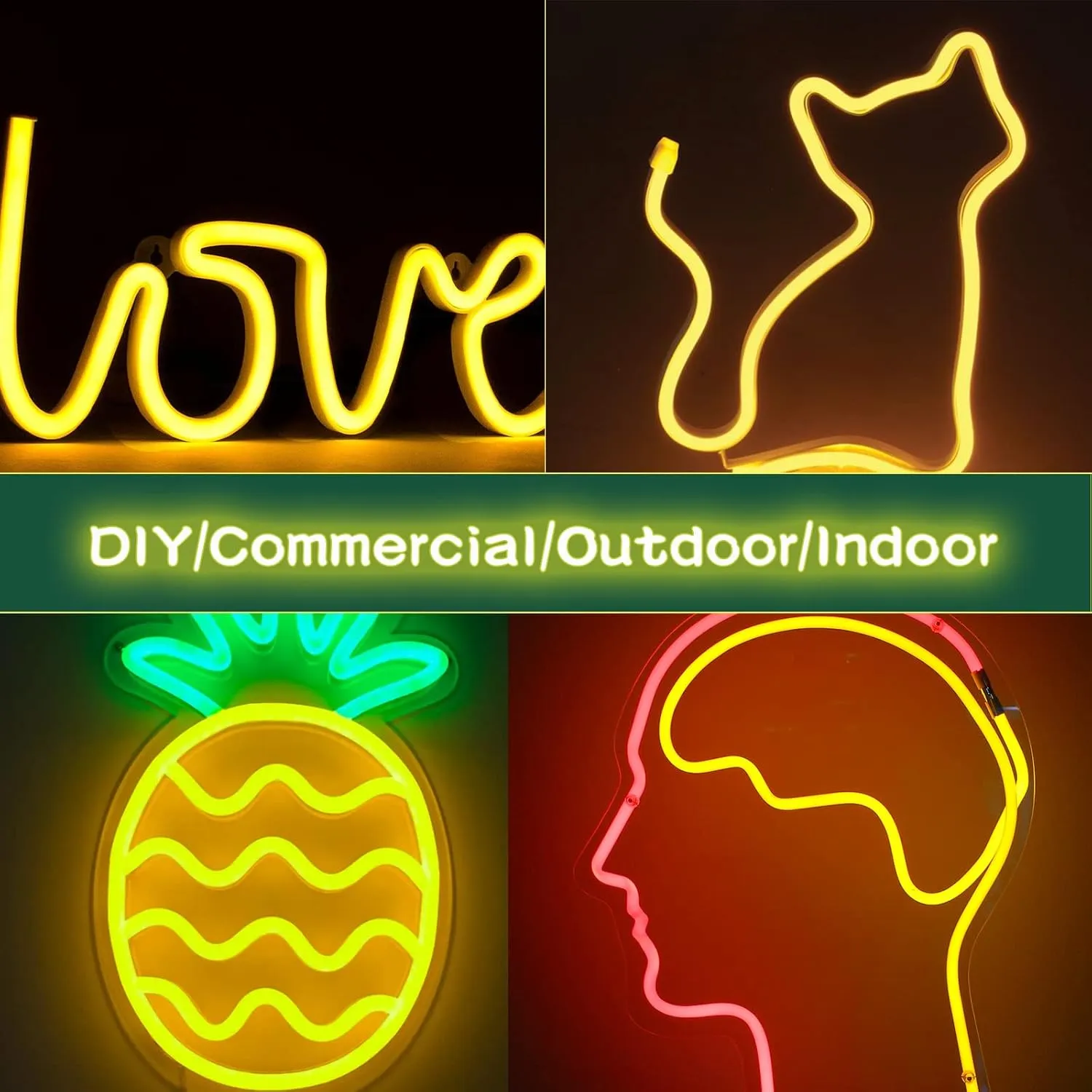Yellow 12V/16.6ft, Flexible Diffuser, Cuttable & Bendable Waterproof Silicon, for Mood Light, Decor & Sign Custom